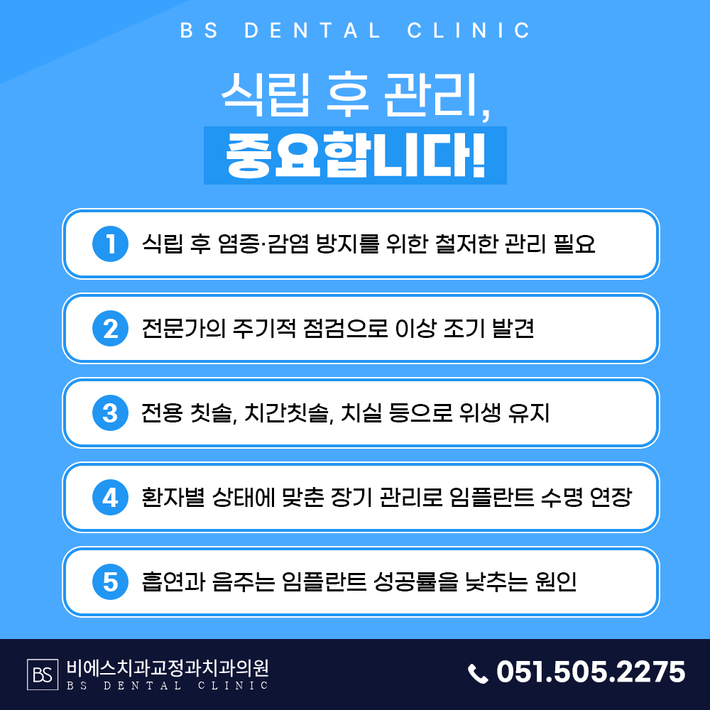 식립 후 사후관리가 중요합니다.