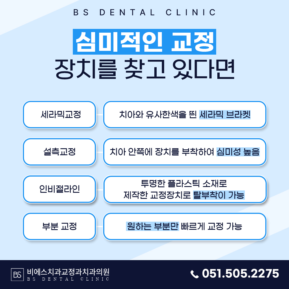 세라믹교정, 인비절라인, 설측교정 등