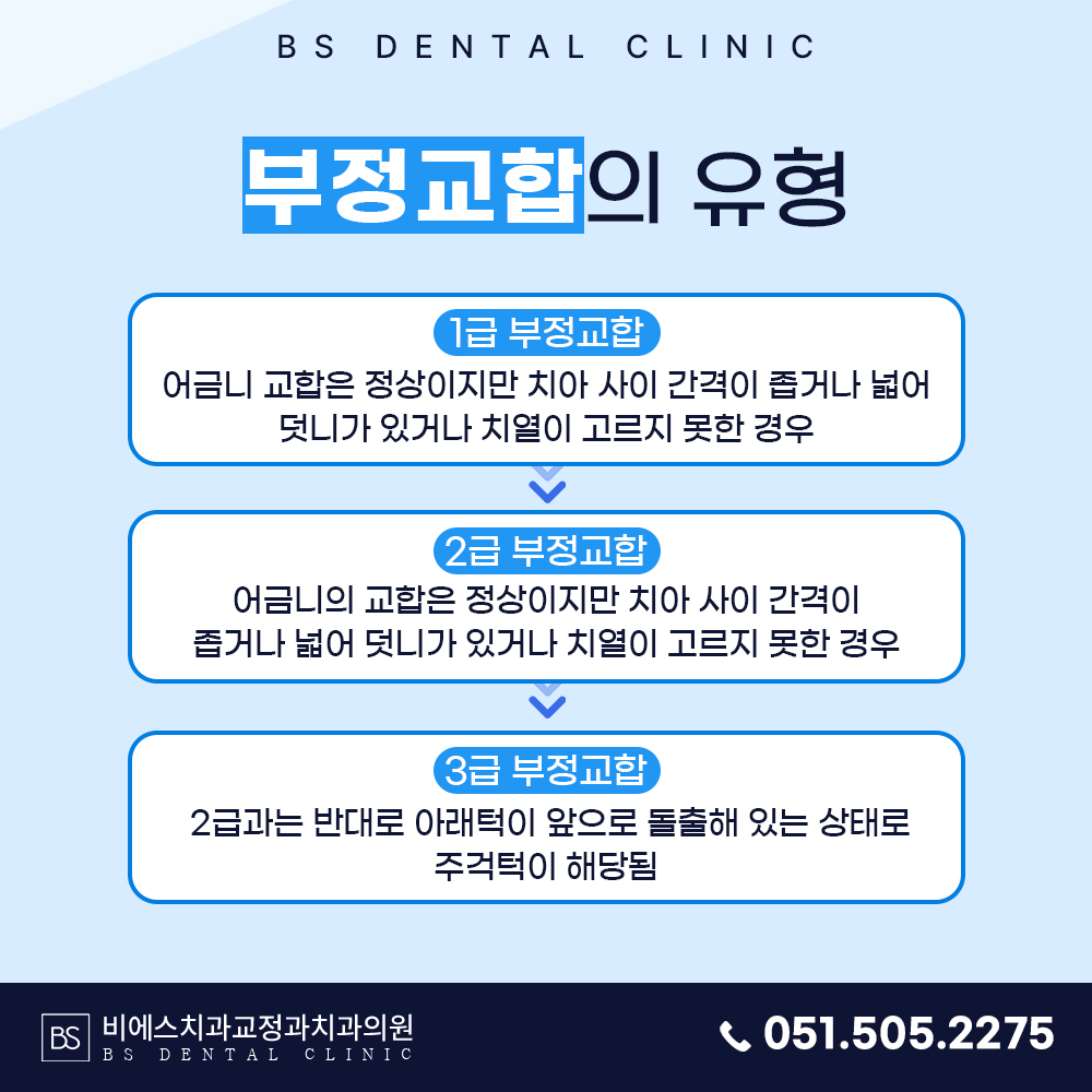 부정교합은 1급부터 3급까지 나눌 수 있는데